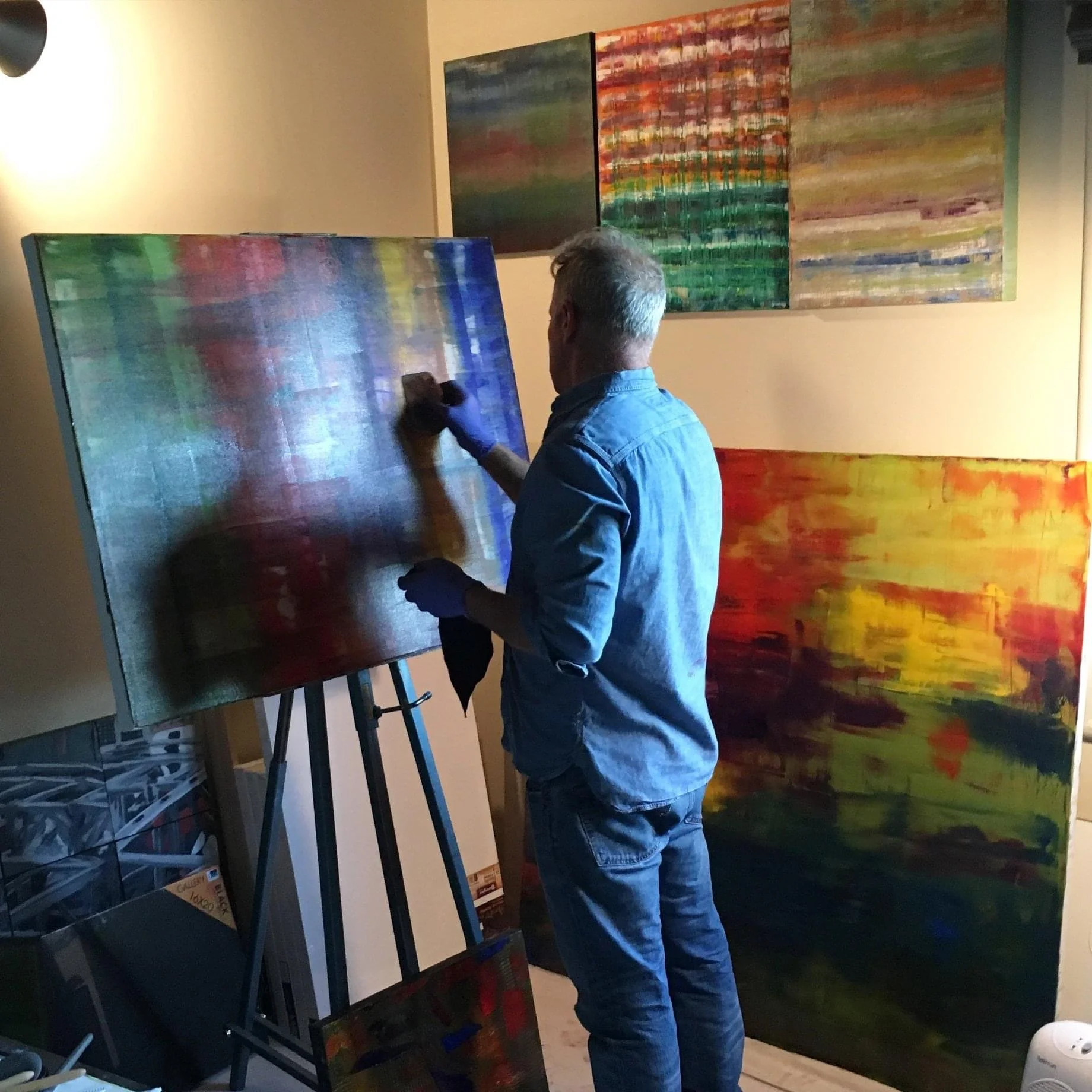 For me painting is the closest thing to being childlike that I’ve found. Looking at the paintings I did as a child makes me jealous of the freedom and expression that was so natural. As I paint, I’m trying to get back to that place. Bright colors, smearing, layering, removing, putting down lines, I’m working to reveal something new that I haven’t seen before. I cannot compete with the beauty of nature, I strive to create something new and differently beautiful as I work.